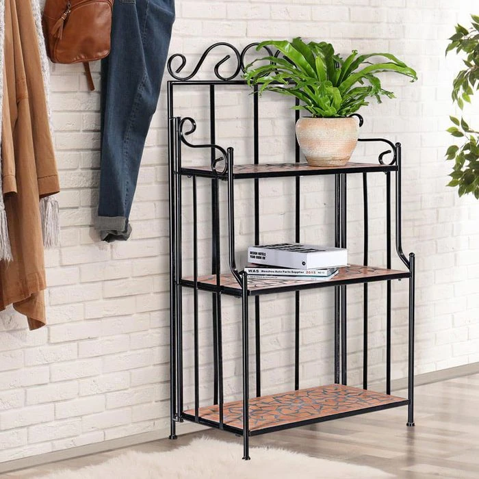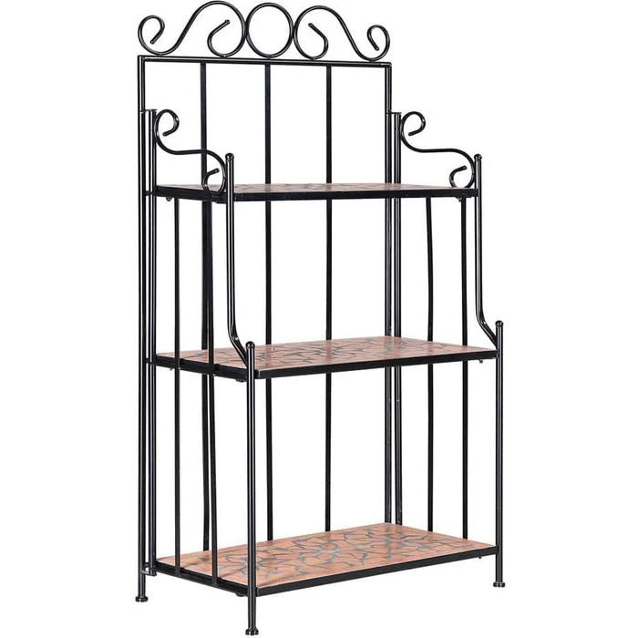 • Stabiles Metallgestell mit Steinmosaik-Regalböden und Gummifüßen