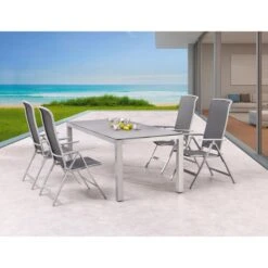 BEST Gartenstuhl Varese, Stoff, Hochlehner, Verstellbar, Anthrazit, Klappbar